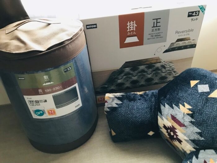 1か月位前から一目惚れして目をつけてた、こたつ布団セット(敷布団、掛布団、レストクッション)を購入したので紹介します。ニトリの店頭でも演出品として飾ってあり、カタログにも掲載されていて、よく目にする商品です。