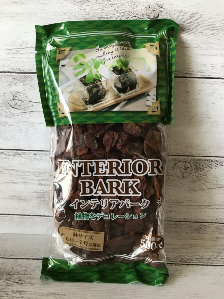 今回は100均セリアで購入した「インテリアバーク」を紹介します。観葉植物だけでなく、昆虫(カブトムシやクワガタ)の飼育に使用する人も多いみたいですね。バークチップとも呼ばれるみたいです。