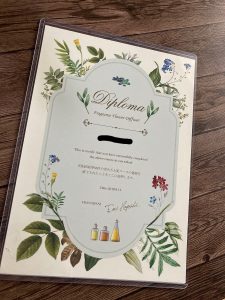 ハンドメイドサイトで自分の作品を販売する際に講座を修了していることが記載できますし、自信にも繋がりました。自宅のディフューザー(芳香剤)も自分で作れるようになったので良かったです。友人などへのプレゼントにも活用できます。