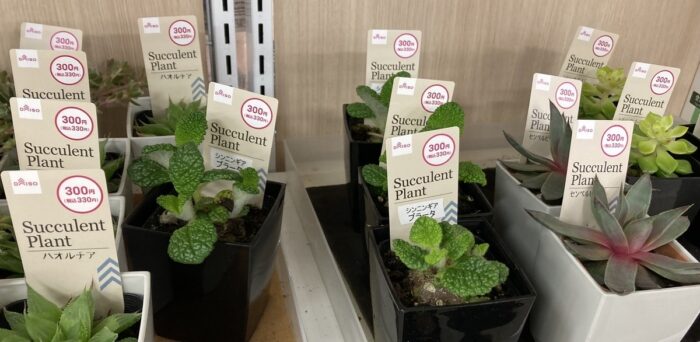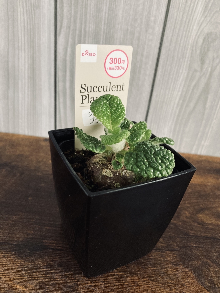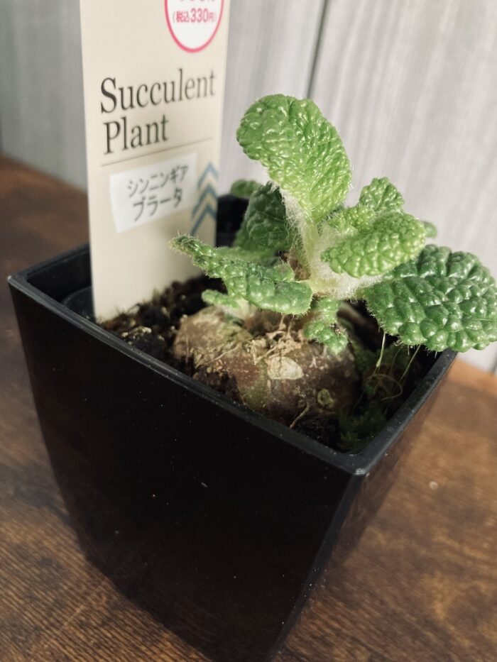 ダイソーって定期的に観葉植物の大量入荷するから楽しい!!!でも、レアな植物は入荷してもすぐに売り切れてしまうんですよね。今回紹介する「シンニンギアブラータ」もなかなか店頭で見かけないのでレアではないかと思います。芋のような塊根とミントに似た葉が特徴。断崖の女王の仲間です。