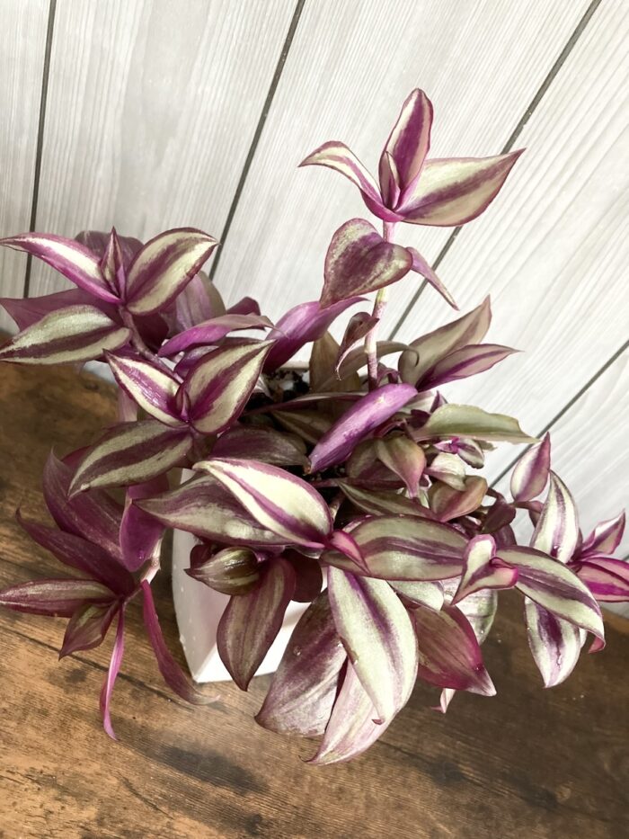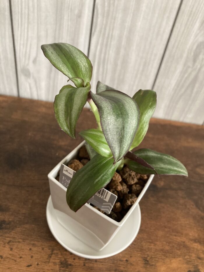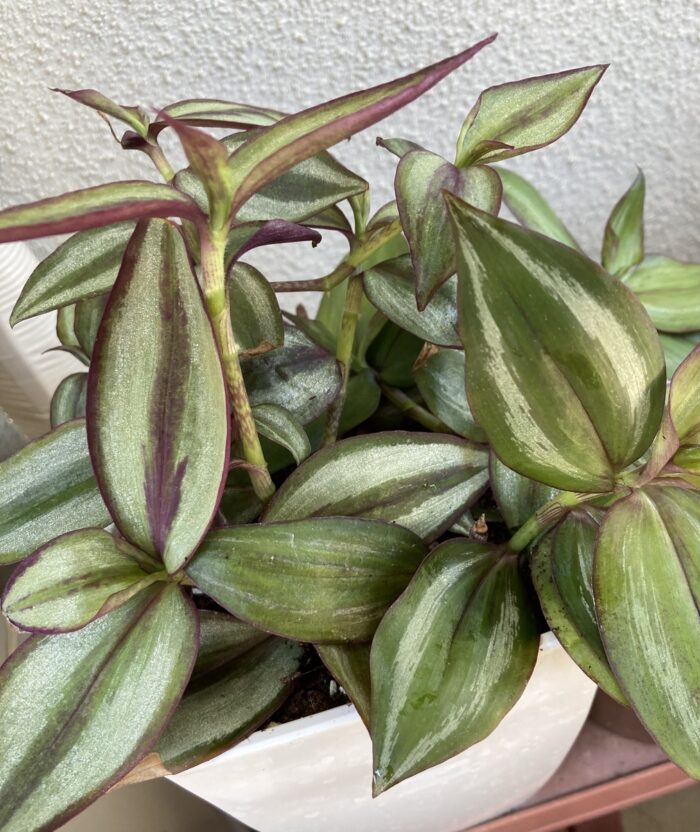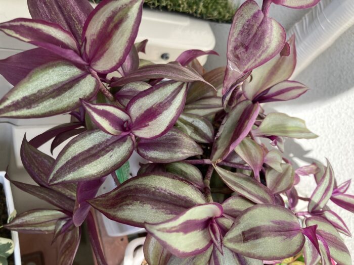 葉の模様と色合いが芸術的で、アートでアンティークっぽい雰囲気に一目惚れ。ゼブリナかと思われますがパープルエレガンスの可能性もありますかね?