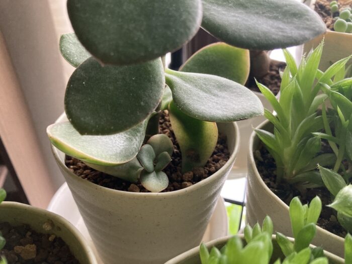 画像は葉挿しの様子です 。金のなる木は丈夫なので、簡単に挿し木や葉挿しで増やすことができます。