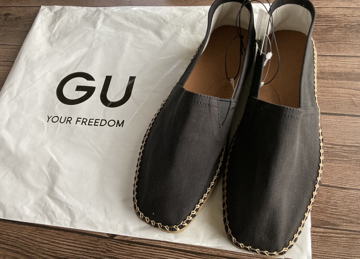 2022年夏に購入したGUのスリッポン。アジアン系のファッションに合いそうなデザインと安さに惹かれての購入です。