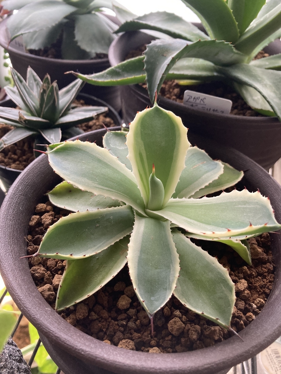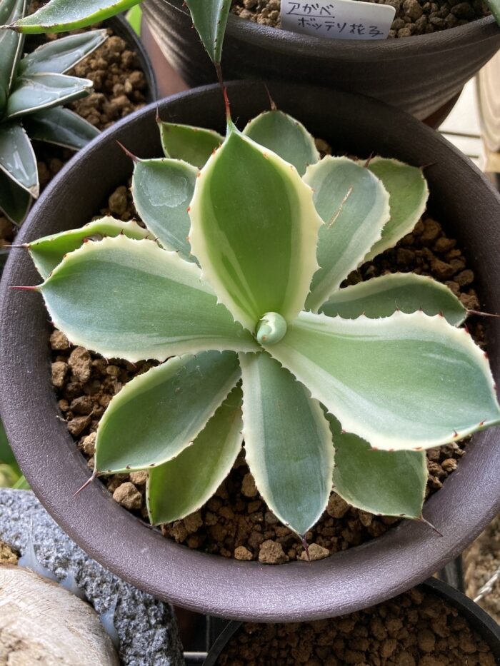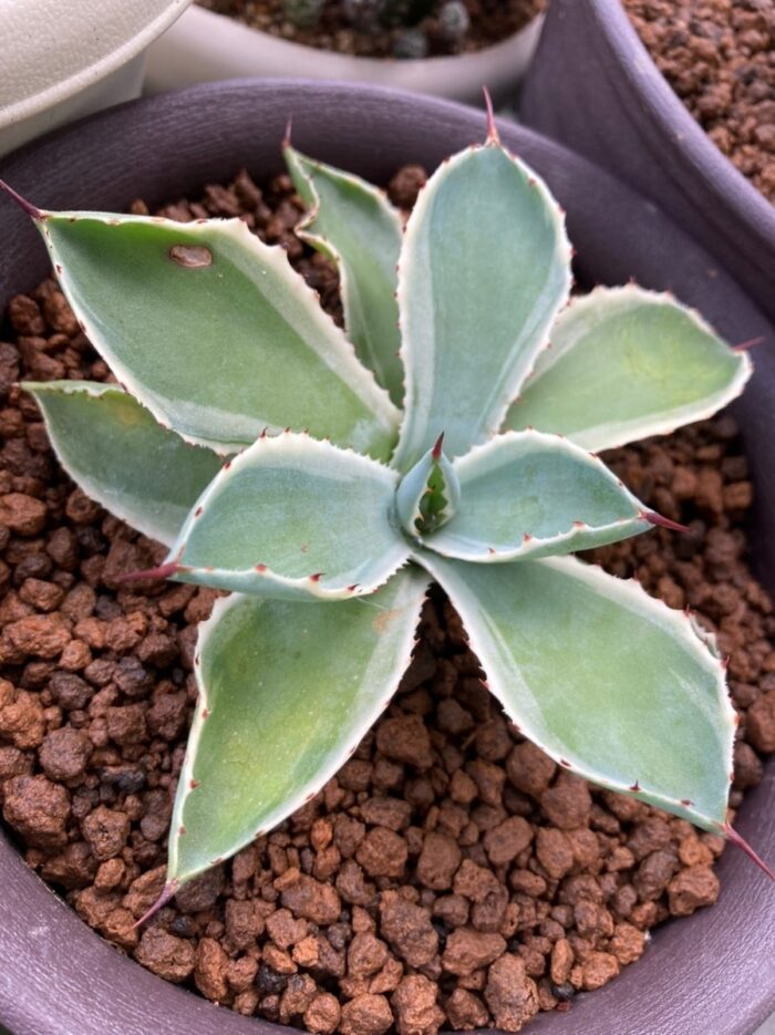 この後の成長記録もこちらの記事に追加していく予定です。「アガベ 吉祥冠錦」を購入した時点で「アガベ 風雷神」と「アガベ ボッテリ」2種類のアガベを育てていたので、これで全部で3種類に!次は「アガベ チタノタ 白鯨」と「アガベ 笹の雪」が欲しいと言っていたのですが、現在はどちらも購入済みです。