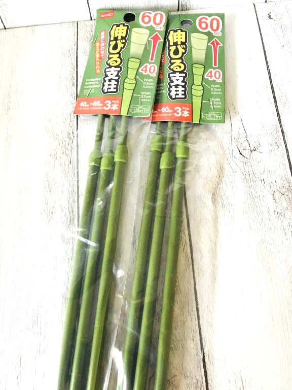 ダイソーの伸びる支柱は成長に合わせて長さが調節できて便利!100円で3本も入っていてクオリティも高いです。