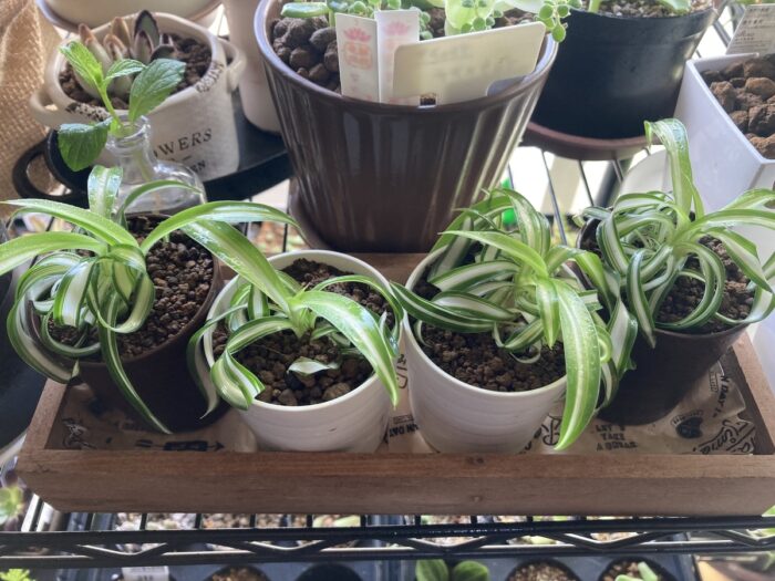 普通タイプのオリヅルランも別記事にて紹介してます!成長記録は随時更新する場合があります。