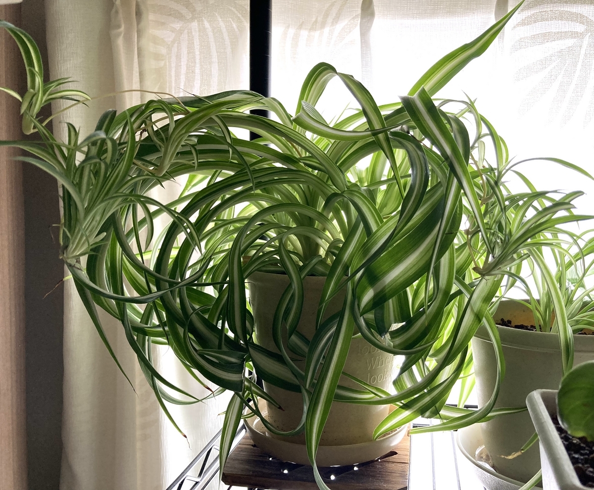 母が友人からボニーの子株をたくさんもらってきたので、おすそ分けしてもらいました。前々から欲しかったんです!オリヅルランにパーマをかけたようなカールのかかった葉が可愛い!大きくなると一層おしゃれなんですよね。