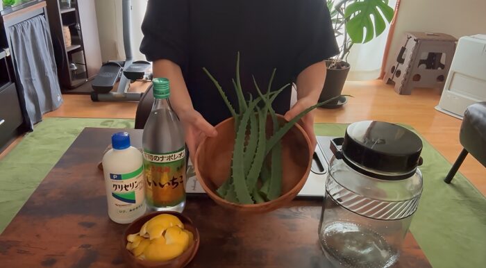 1.アロエとレモンは洗って水気をとっておく