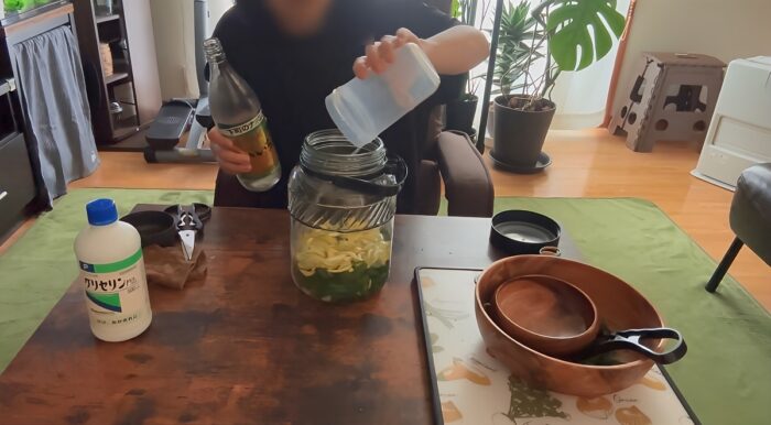 3.むぎ焼酎720ml、グリセリン100mlも入れる