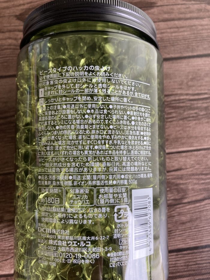こちらも見た目がおしゃれなところに惹かれたビーズタイプのハッカの虫よけです。
