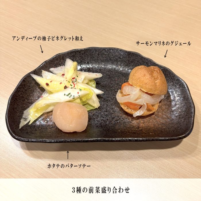 - 3種の前菜盛り合わせ ¥450(税込)