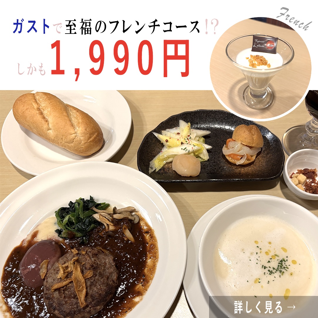 そうなんだけど、思いがけず「ガスト」でリーズナブルにフレンチコースが食べれるって知って、少し早いけどクリスマス気分味わってきたよ