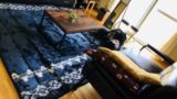 本体の床面シートを左右に広げ、整えてください。最後に外側の4点をペグで固定して完成です。